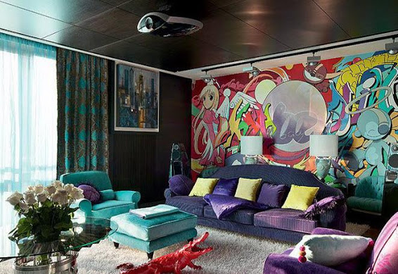 Линия стиля допускает комбинирование анимационных элементов с чертами английского или скандинавского интерьеров. Правда, единственным главным требованием в таком случае является их гармоничное сочетание.