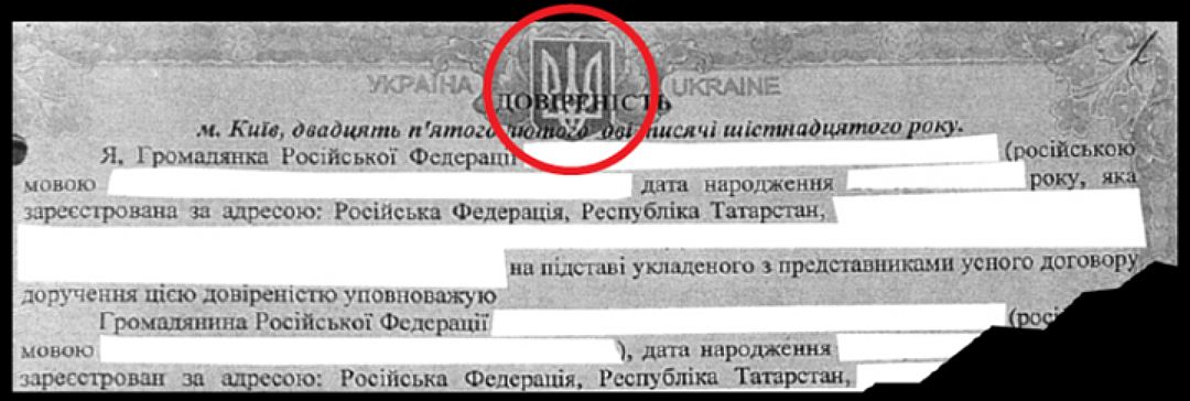 Фальшивая доверенность была напечатана на официальном украинском бланке.