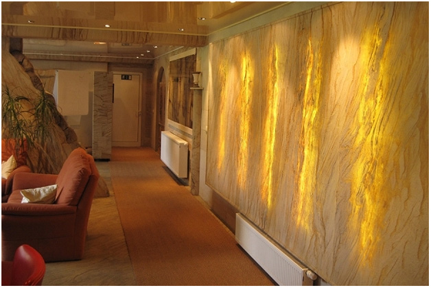 - Обои удобны в обслуживании, легко моется, грязь не проникает в структуру камня, прост в монтаже;
