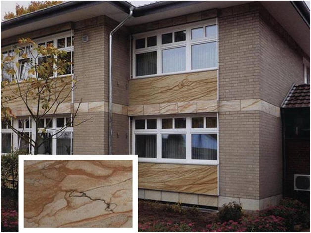 - Долговечен, устойчив к стиранию, гарантия на него до 50 лет; легкий, 1кв. метр весит порядка 2 кг; рабочая температура на фасаде от -40 до +110, максимальная температура применения +250;